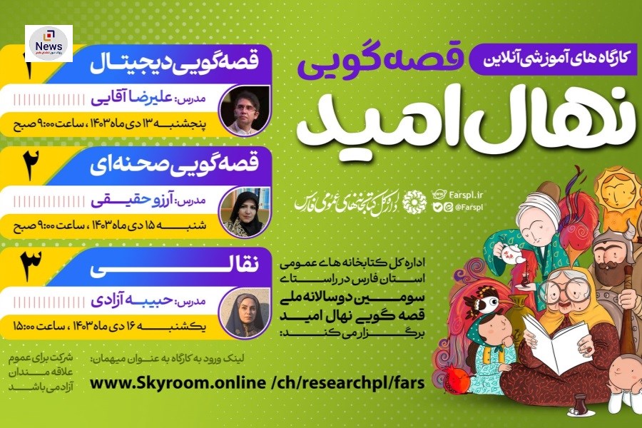 به گزارش گروه فرهنگ، هنر و رسانه پایگاه خبری گفتمان فارس، با محوریت سومین دوسالانه ملی قصه گویی نهال امید، سه کارگاه آموزش قصه گویی آنلاین به میزبانی اداره کل کتابخانه های عمومی فارس برگزار می شود.